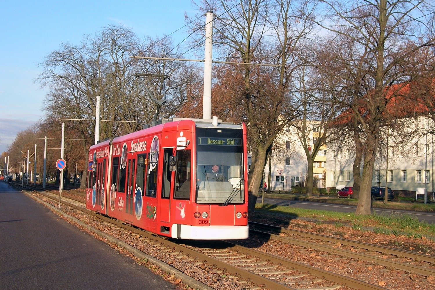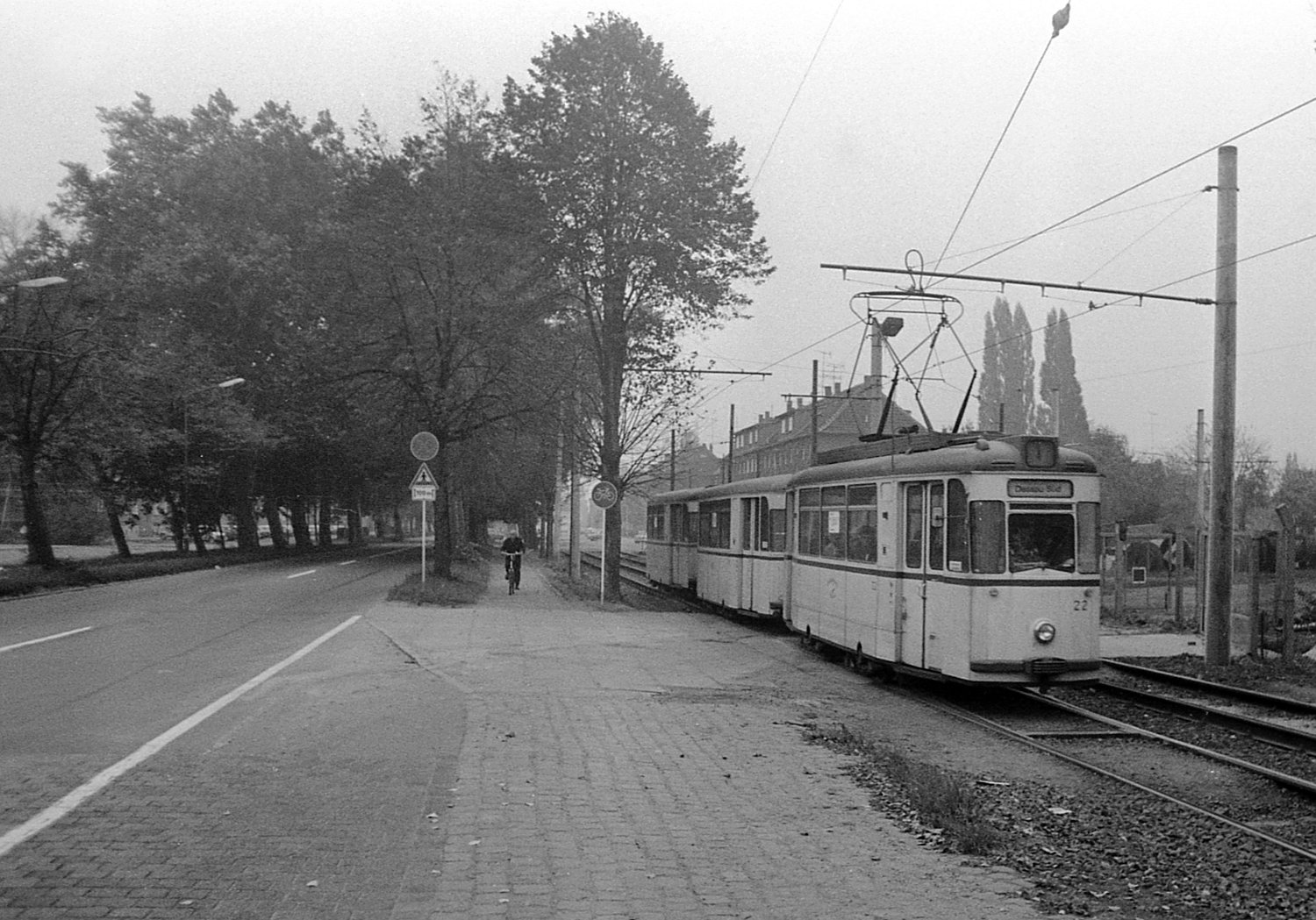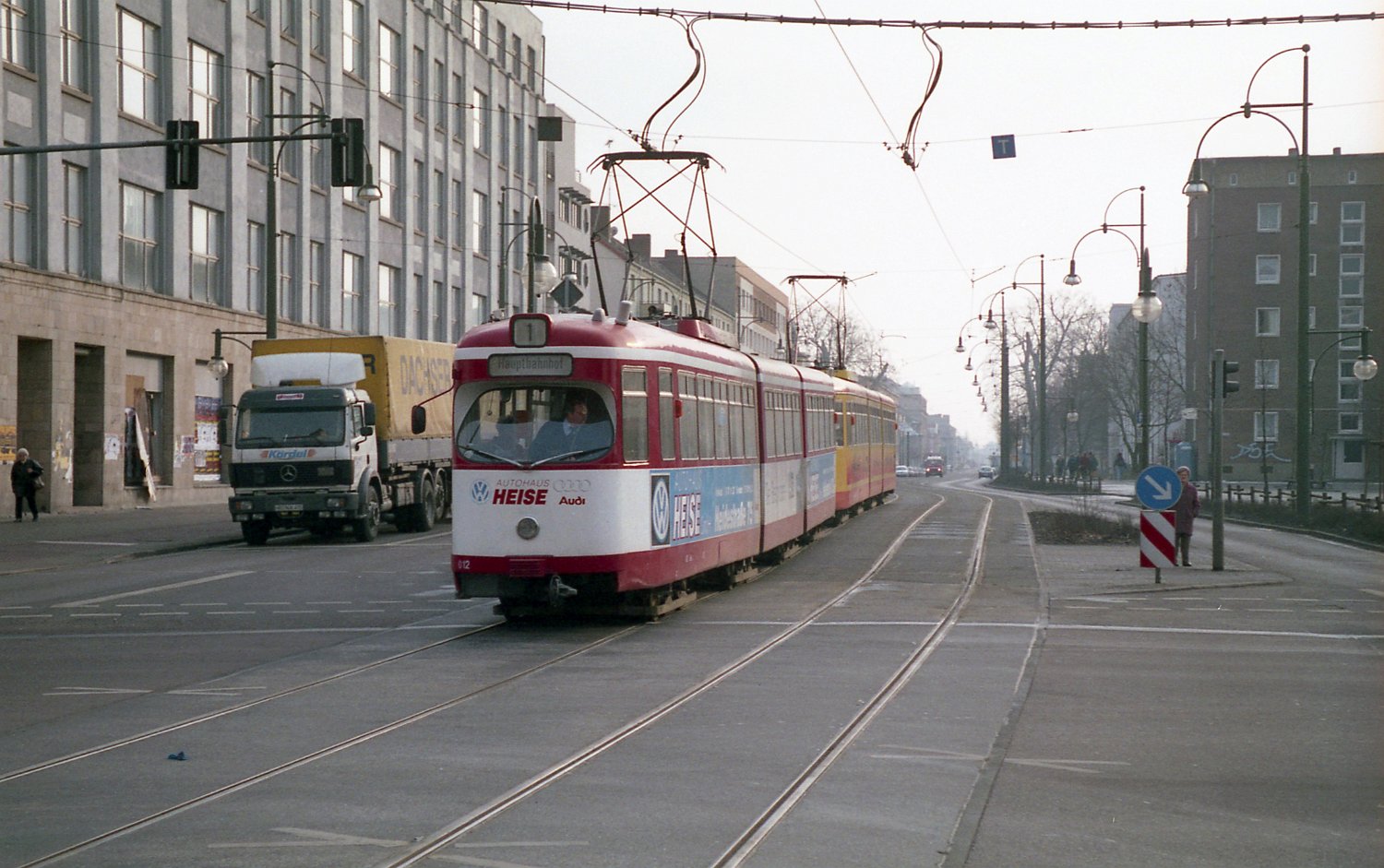 NEU 41 DUEWAG-GT8 012 mit Schmierbügel für den Winterdienst auf dem hinteren Teil Betriebshof 2005 |