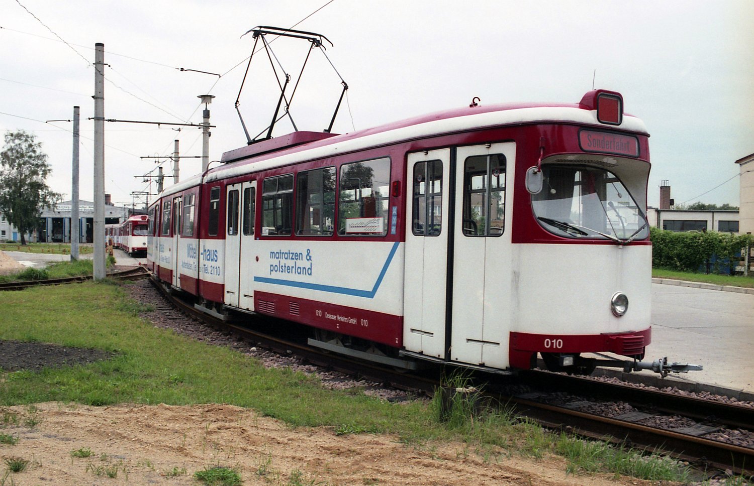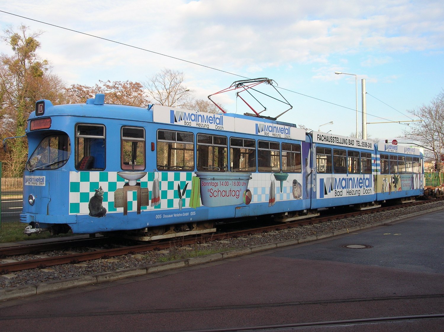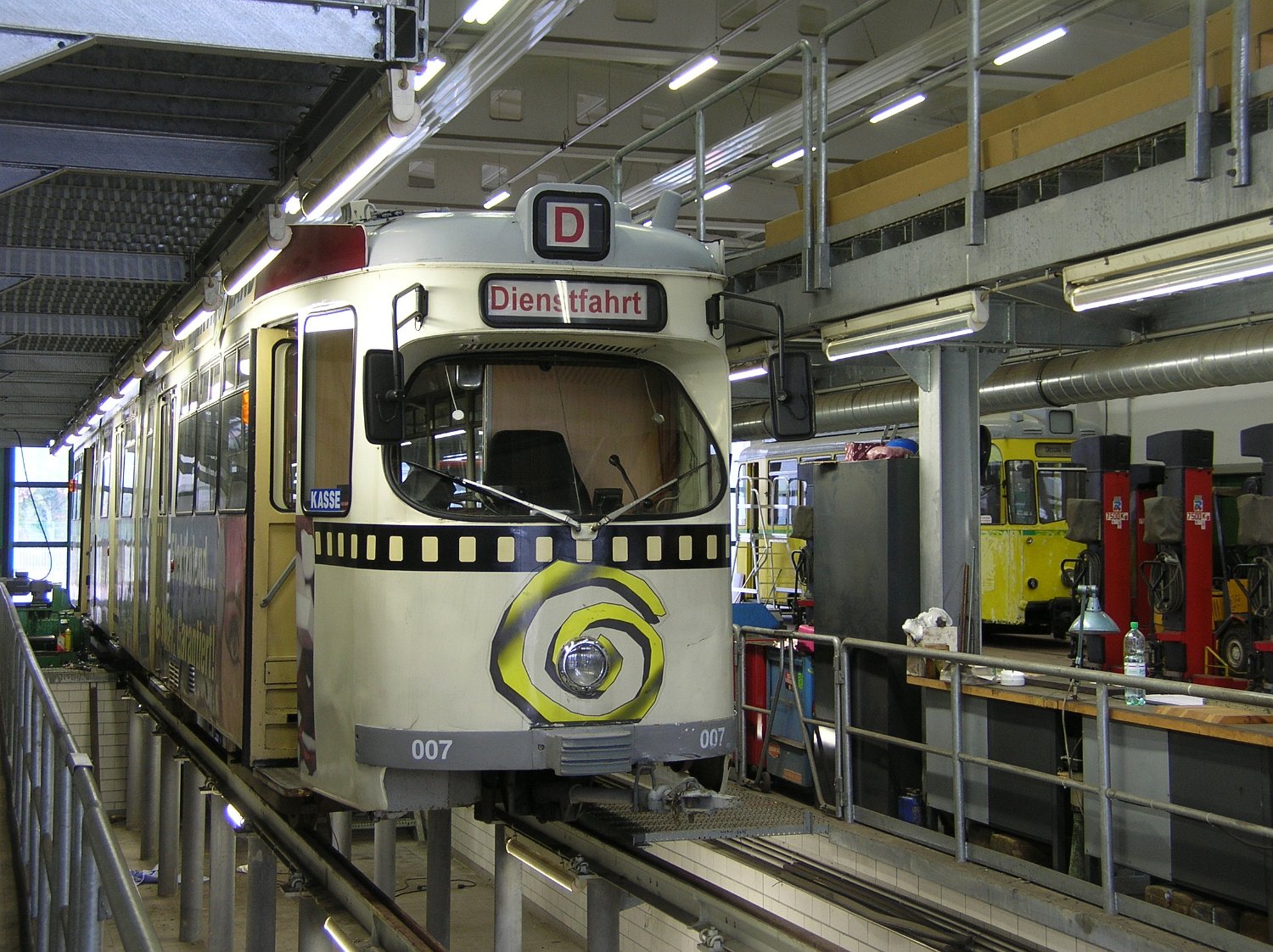 NEU 40 DUEWAG-GT8 012 mit Schmierbügel für den Winterdienst auf dem hinteren Teil Betriebshof 2005 |