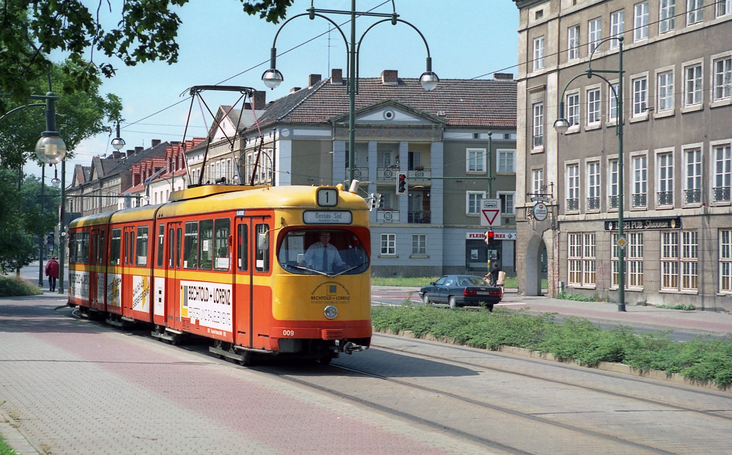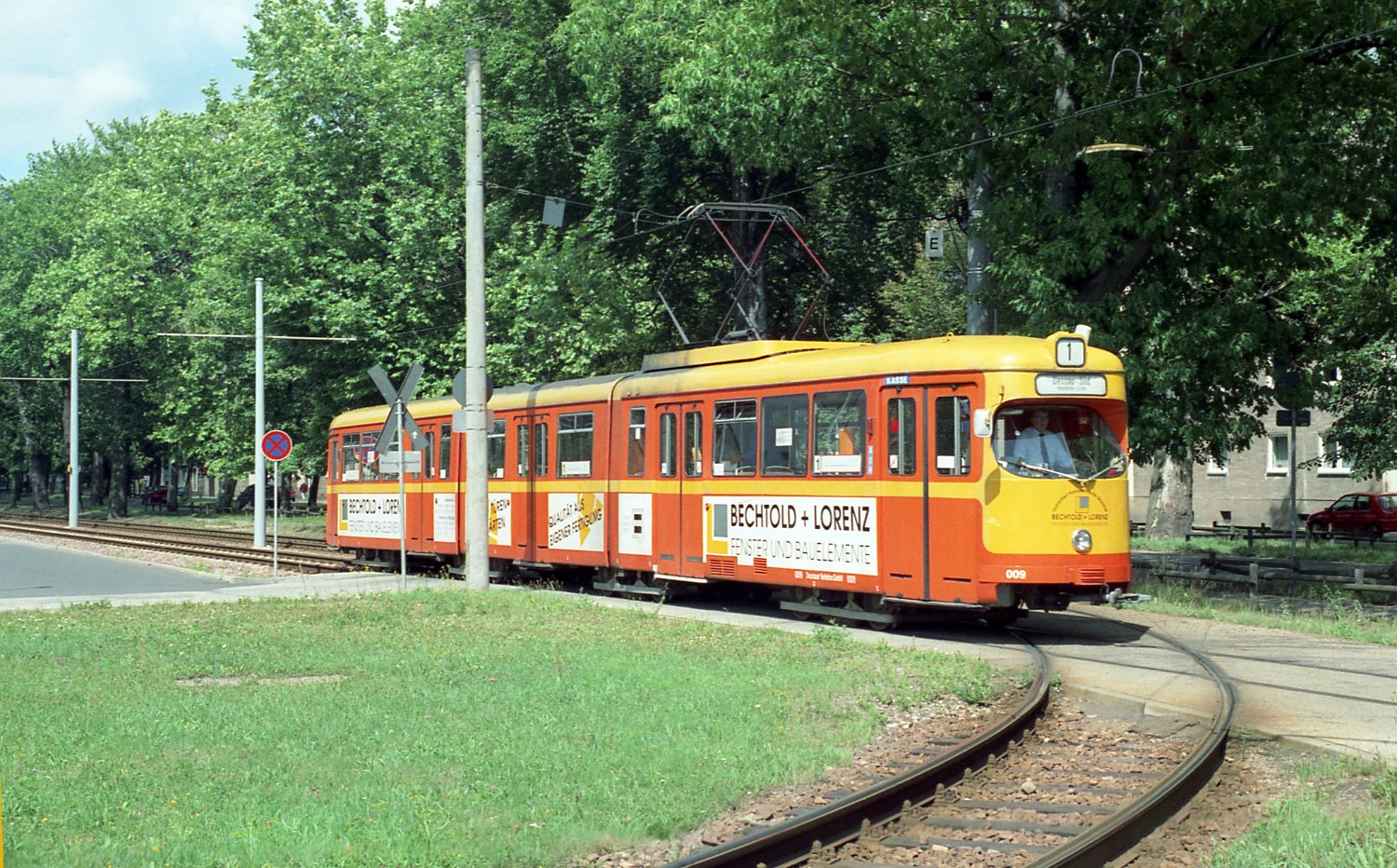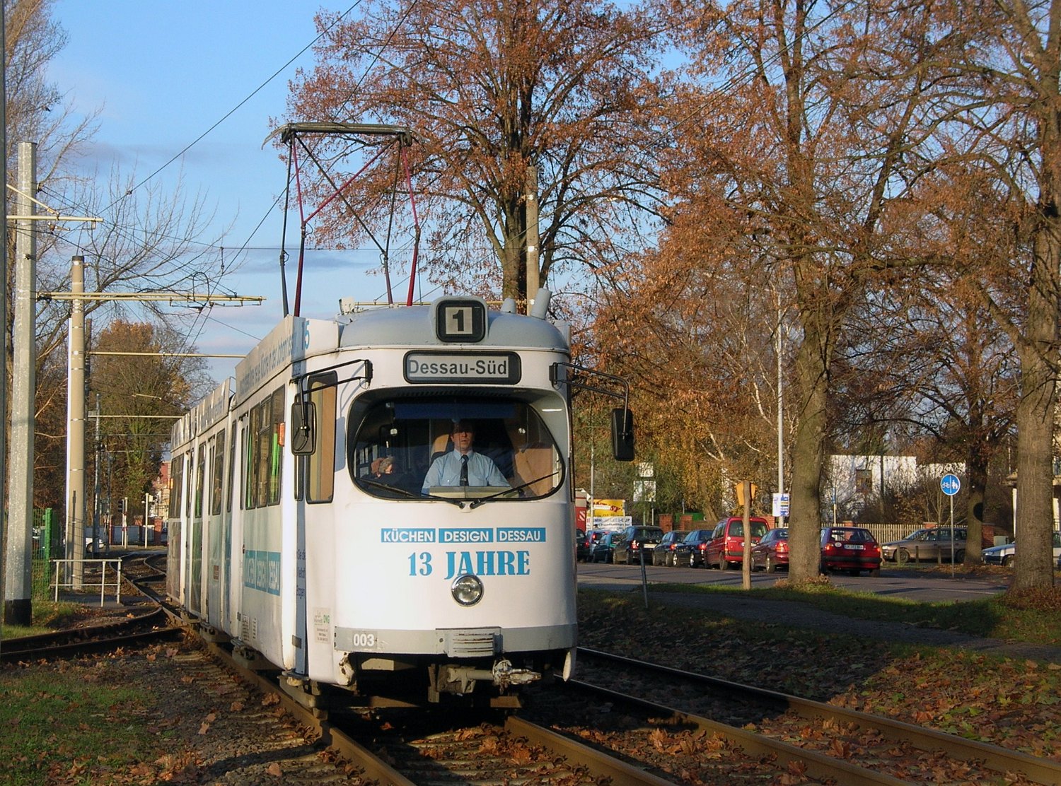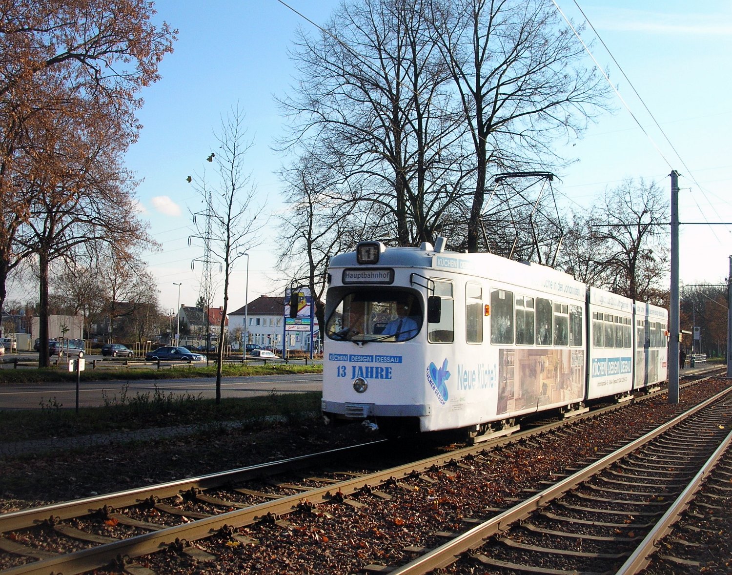 NEU 40 DUEWAG-GT8 012 mit Schmierbügel für den Winterdienst auf dem hinteren Teil Betriebshof 2005 |