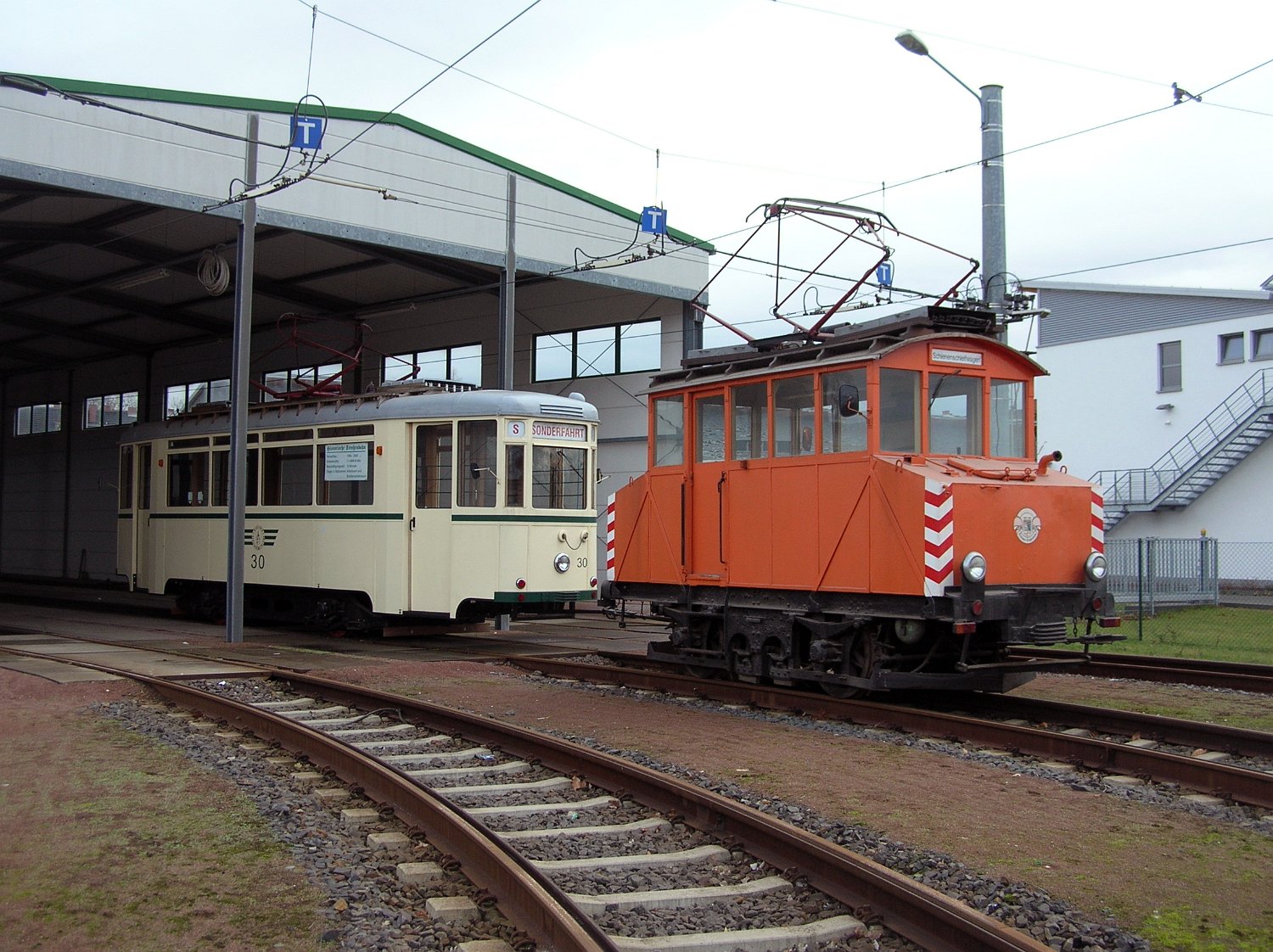 NEU 53 Schörling-Schienenschleifwagen als historischer ATw G2 und LOWA-Aufbauwagen als HTw 30, Betriebshof 2005 |
