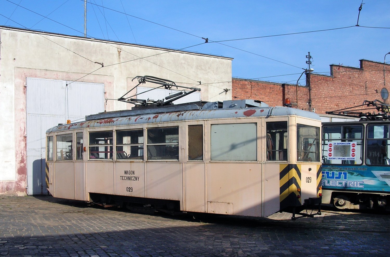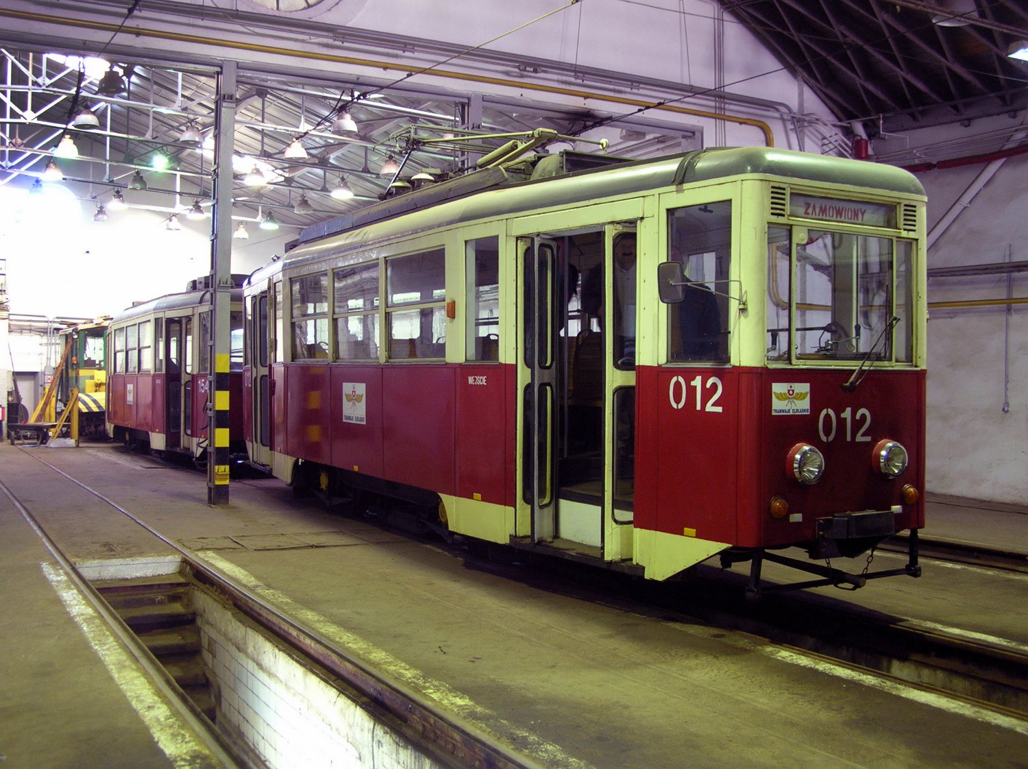 Der Museumszug Tw 5N 012 und Bw 5ND 154 im Betriebshof am 11. Oktober 2005