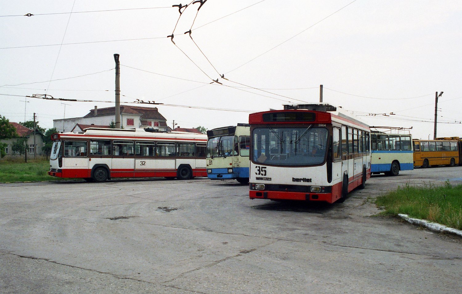 NEU 29 Berliet-Obusse 32 und 35 aus Lyon im Depot Dâmbovița 1999. |