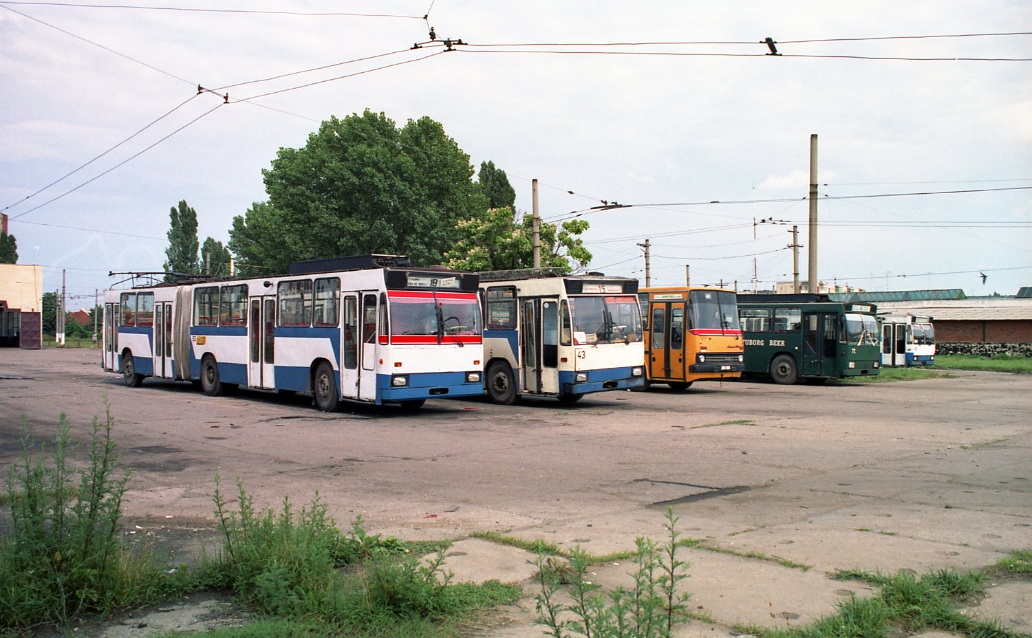 NEU 26 Berliet-Obusse 32 und 35 aus Lyon im Depot Dâmbovița 1999. |