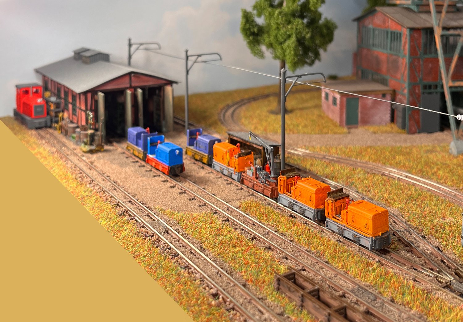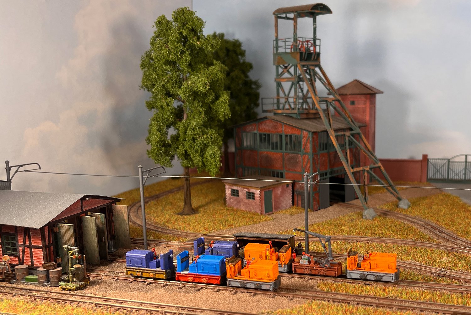 29 Zwei Jung ZL 233 an der Dieseltankstelle. Dahinter endet die elektrifizierte Strecke die irgendwann von einem Waldbahn-Modul kommen soll. Dafür stehen zwei SSW-Fahrleitungsloks zur Verfügung. |