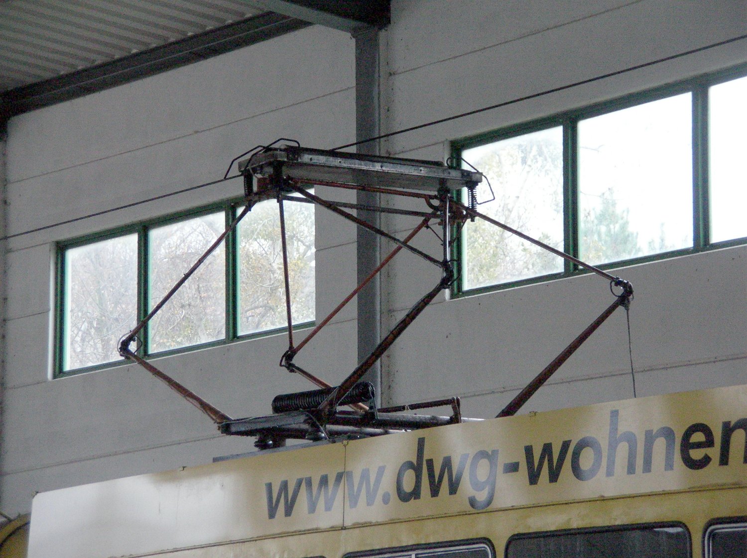 NEU 40 DUEWAG-GT8 012 mit Schmierbügel für den Winterdienst auf dem hinteren Teil Betriebshof 2005 |