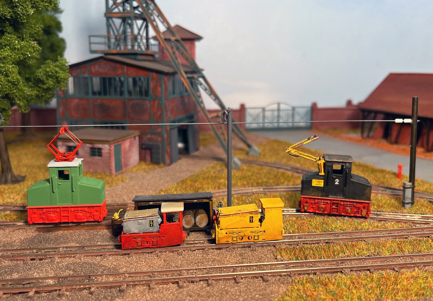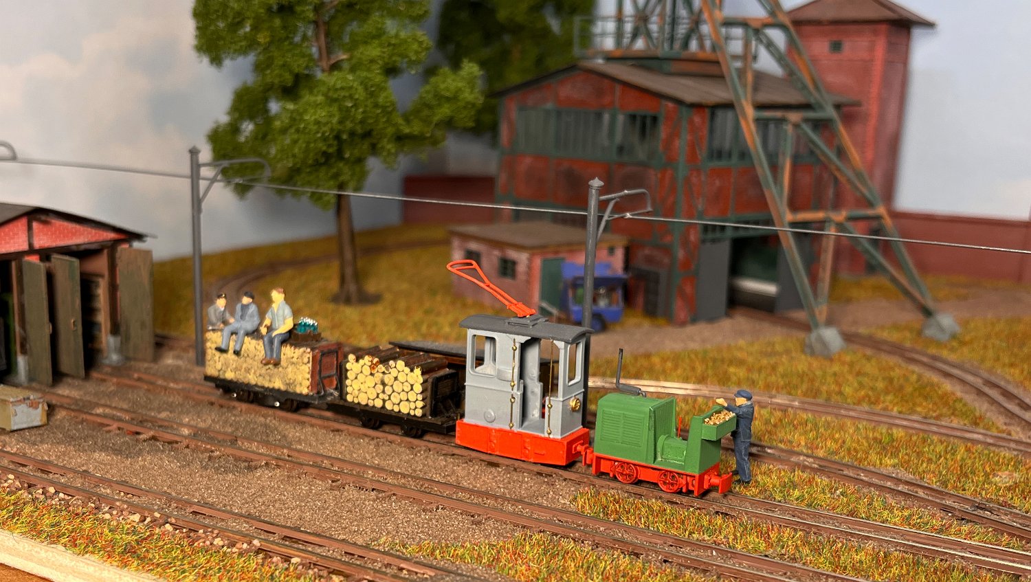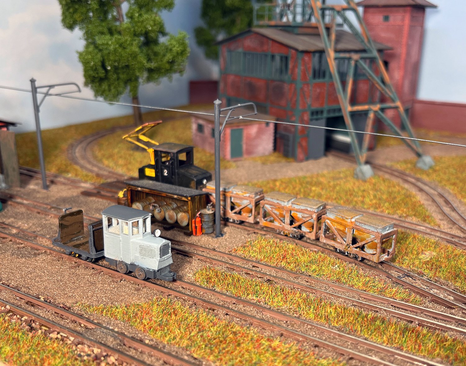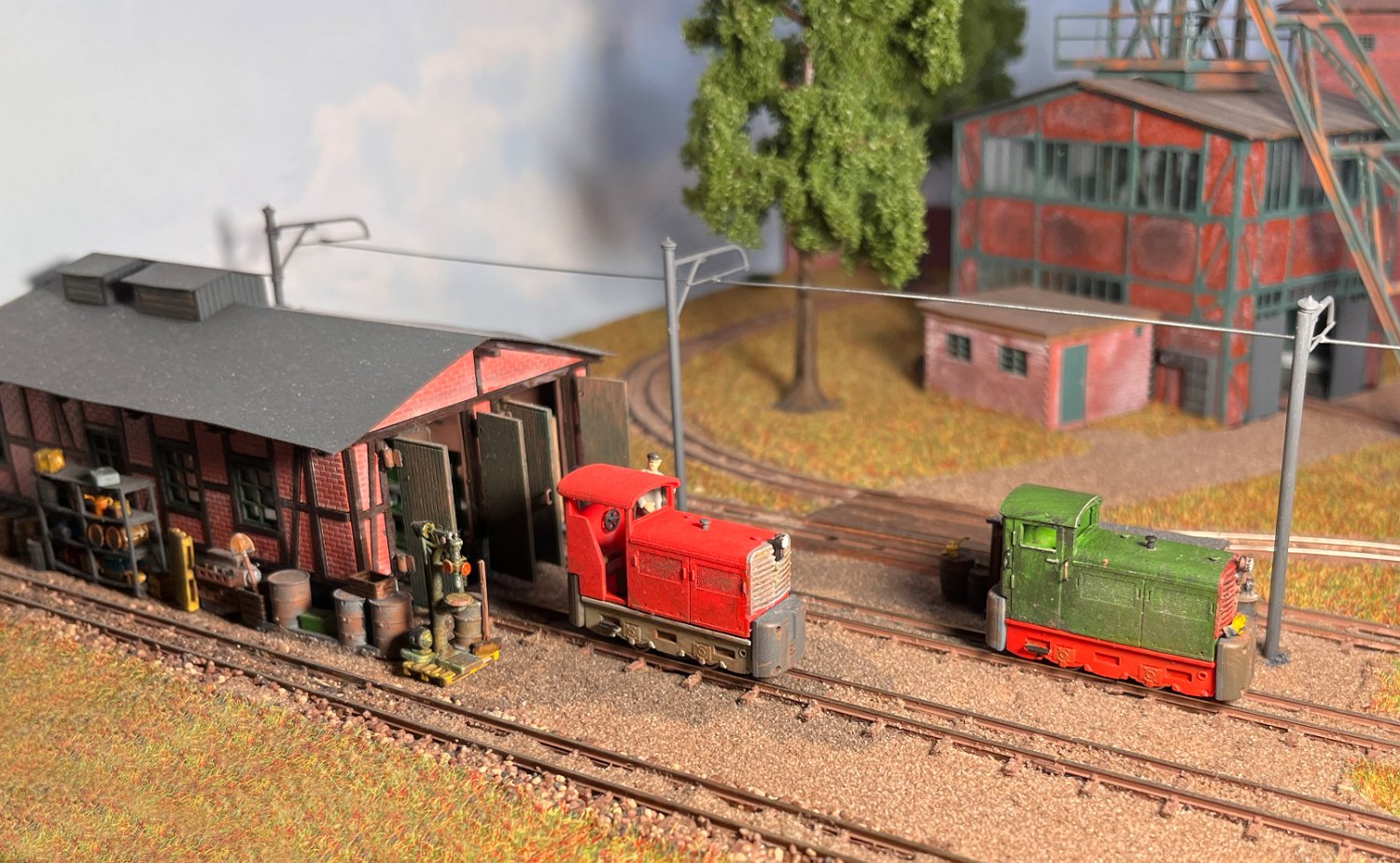 29 Zwei Jung ZL 233 an der Dieseltankstelle. Dahinter endet die elektrifizierte Strecke die irgendwann von einem Waldbahn-Modul kommen soll. Dafür stehen zwei SSW-Fahrleitungsloks zur Verfügung. |