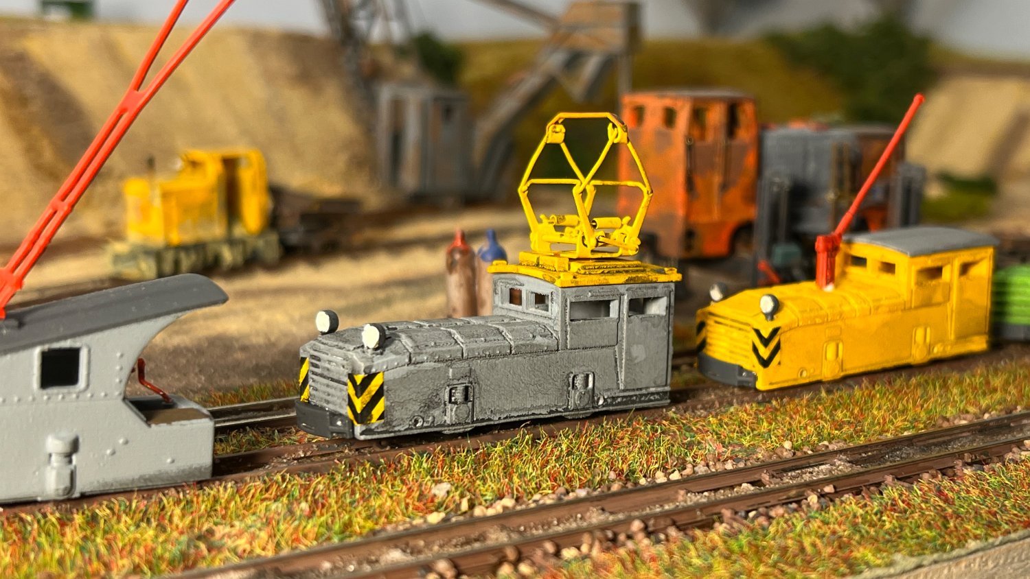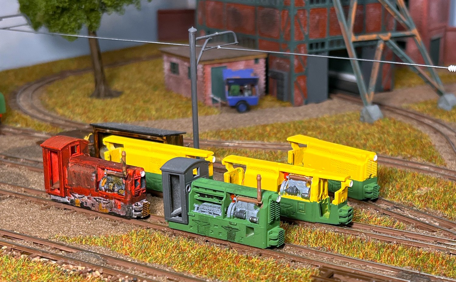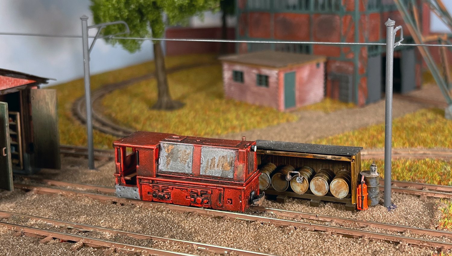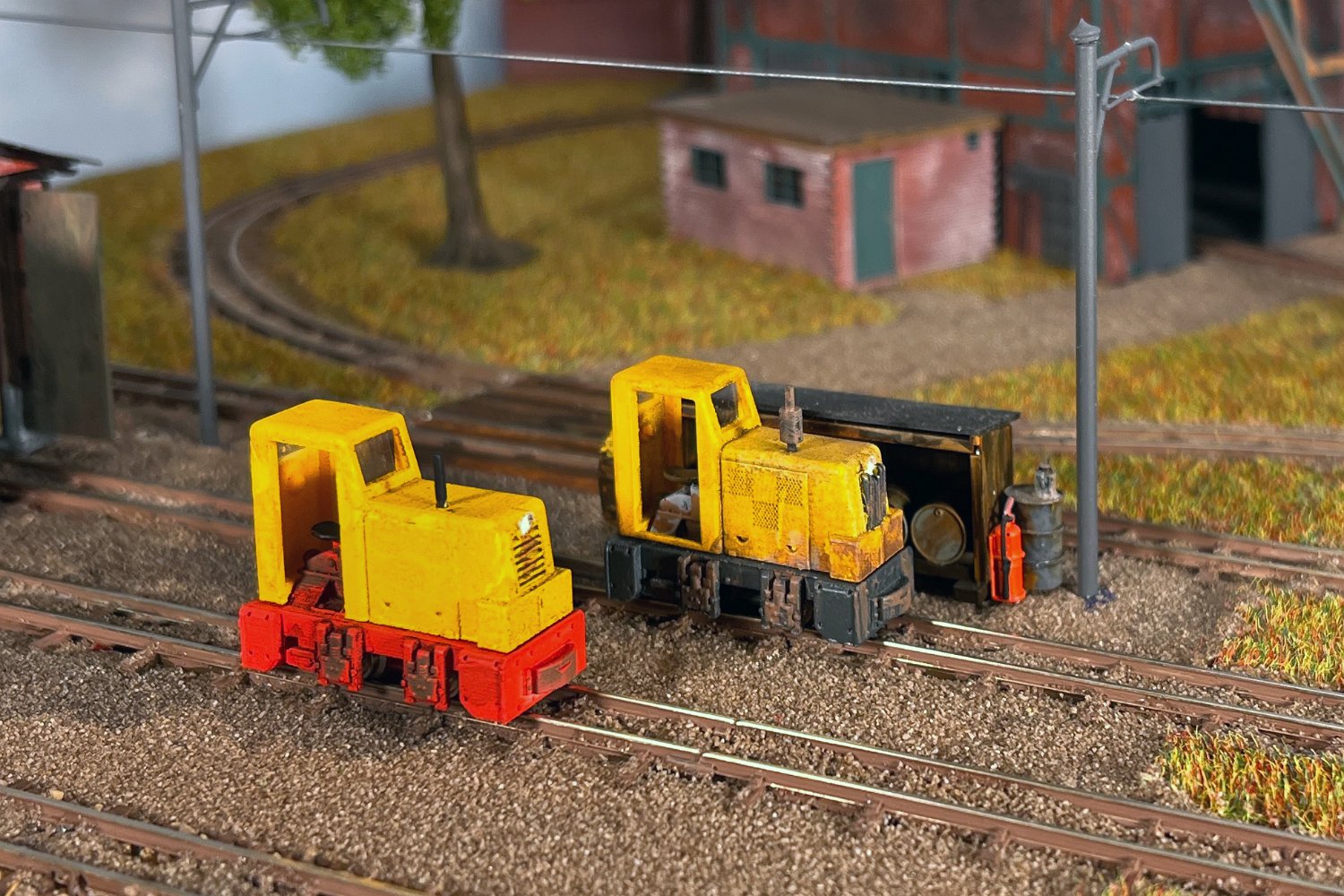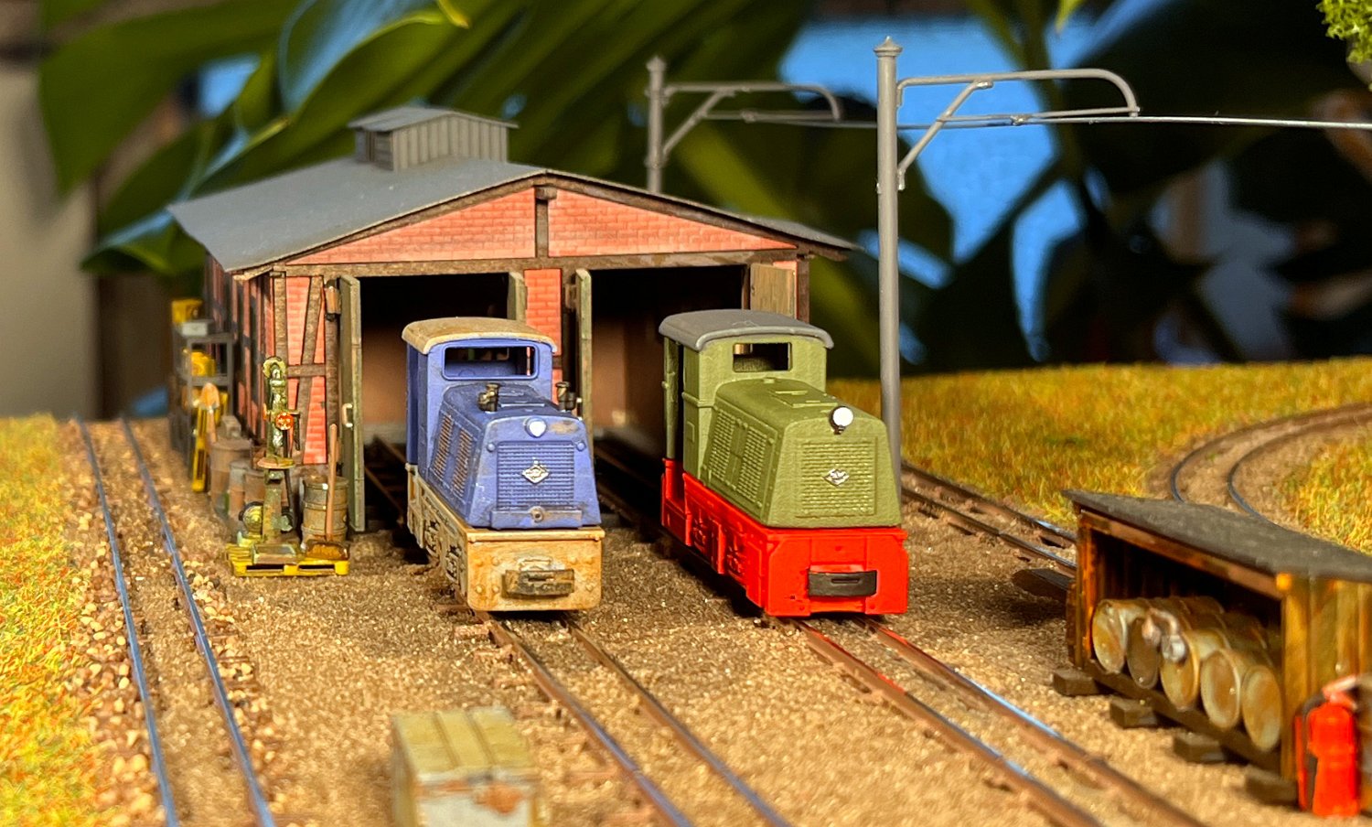 29 Zwei Jung ZL 233 an der Dieseltankstelle. Dahinter endet die elektrifizierte Strecke die irgendwann von einem Waldbahn-Modul kommen soll. Dafür stehen zwei SSW-Fahrleitungsloks zur Verfügung. |