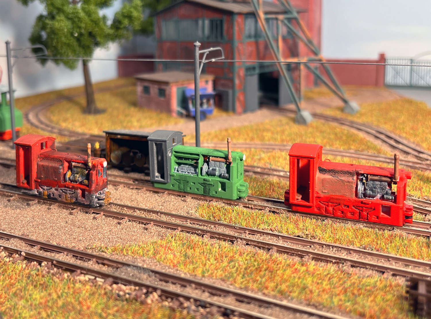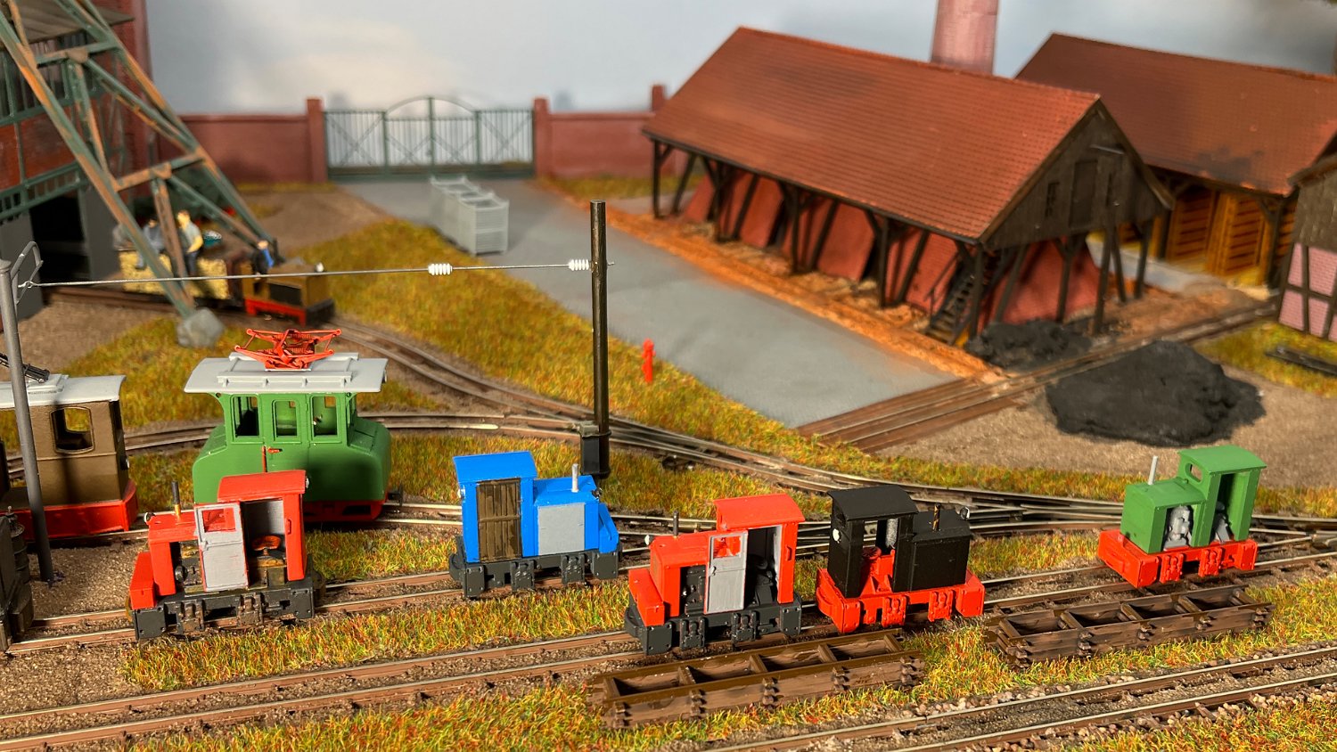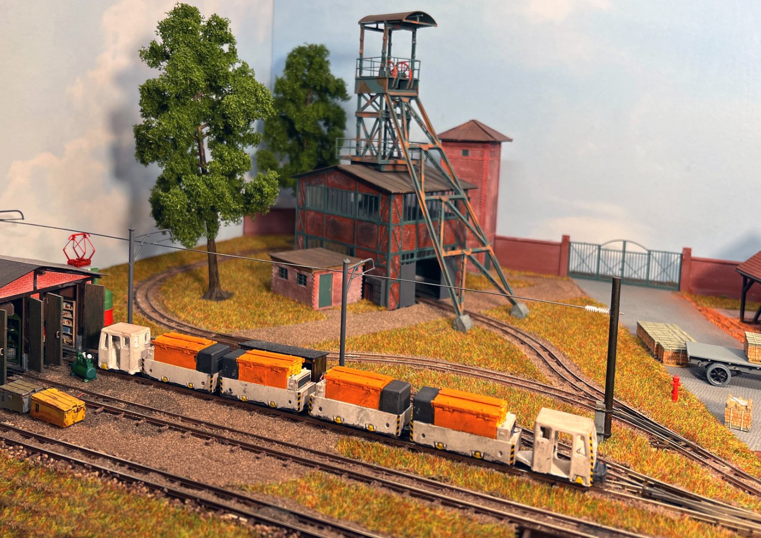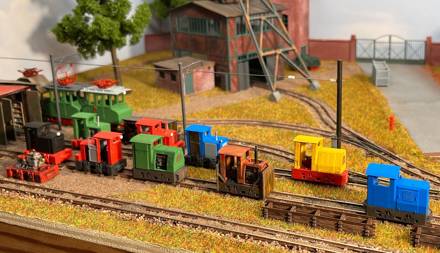 29 Zwei Jung ZL 233 an der Dieseltankstelle. Dahinter endet die elektrifizierte Strecke die irgendwann von einem Waldbahn-Modul kommen soll. Dafür stehen zwei SSW-Fahrleitungsloks zur Verfügung. |
