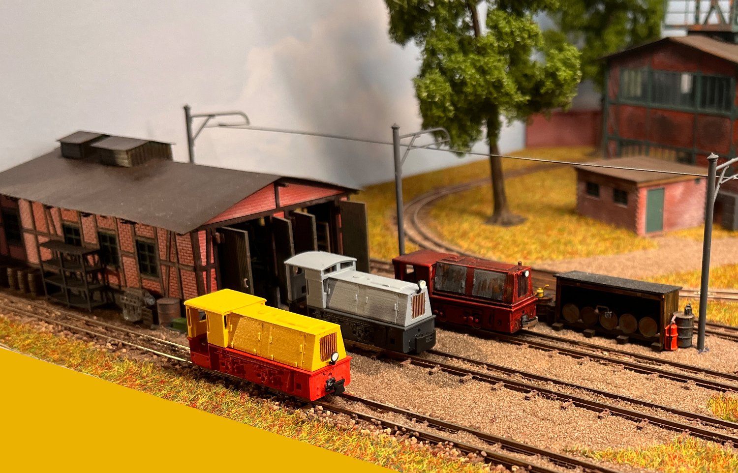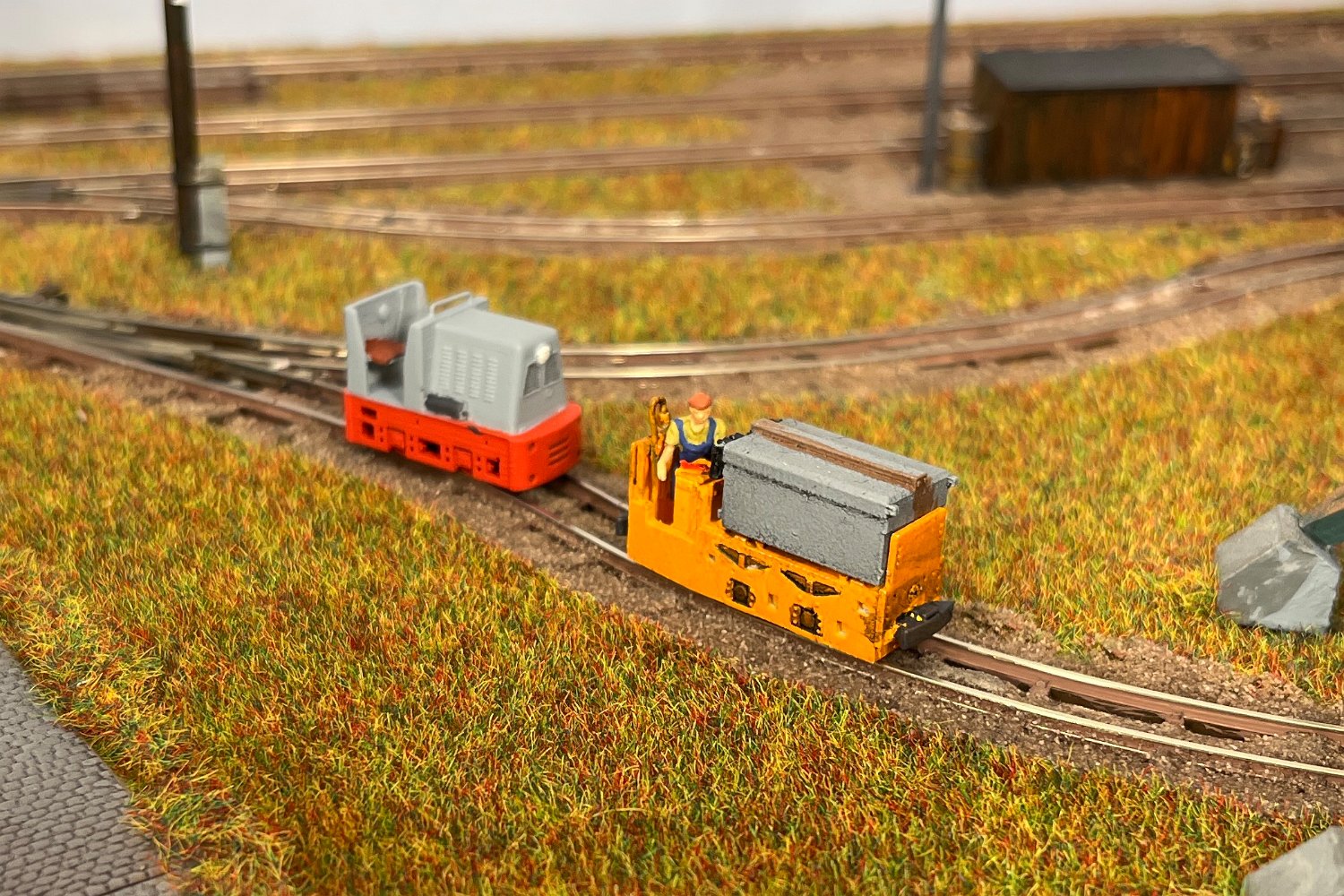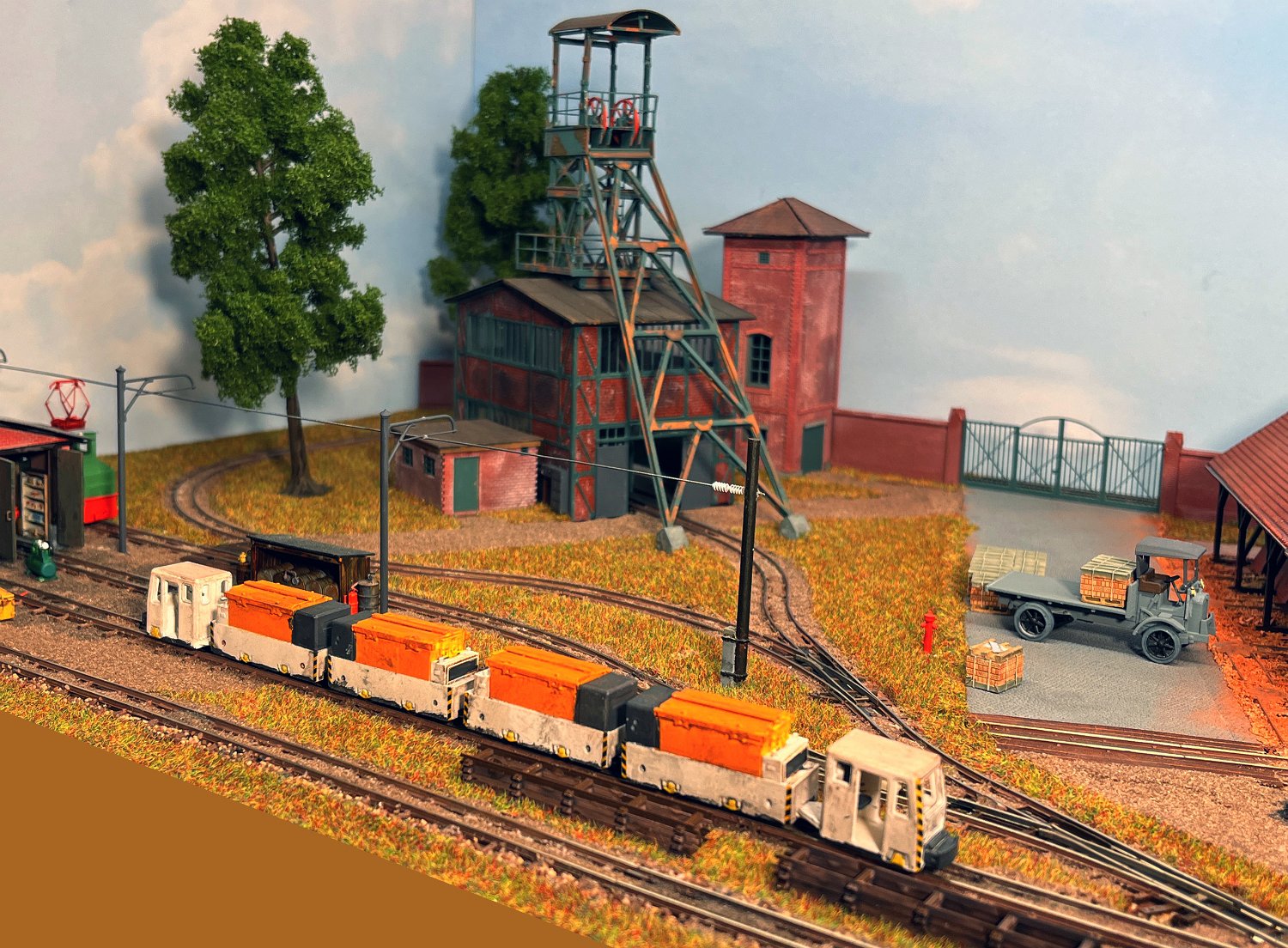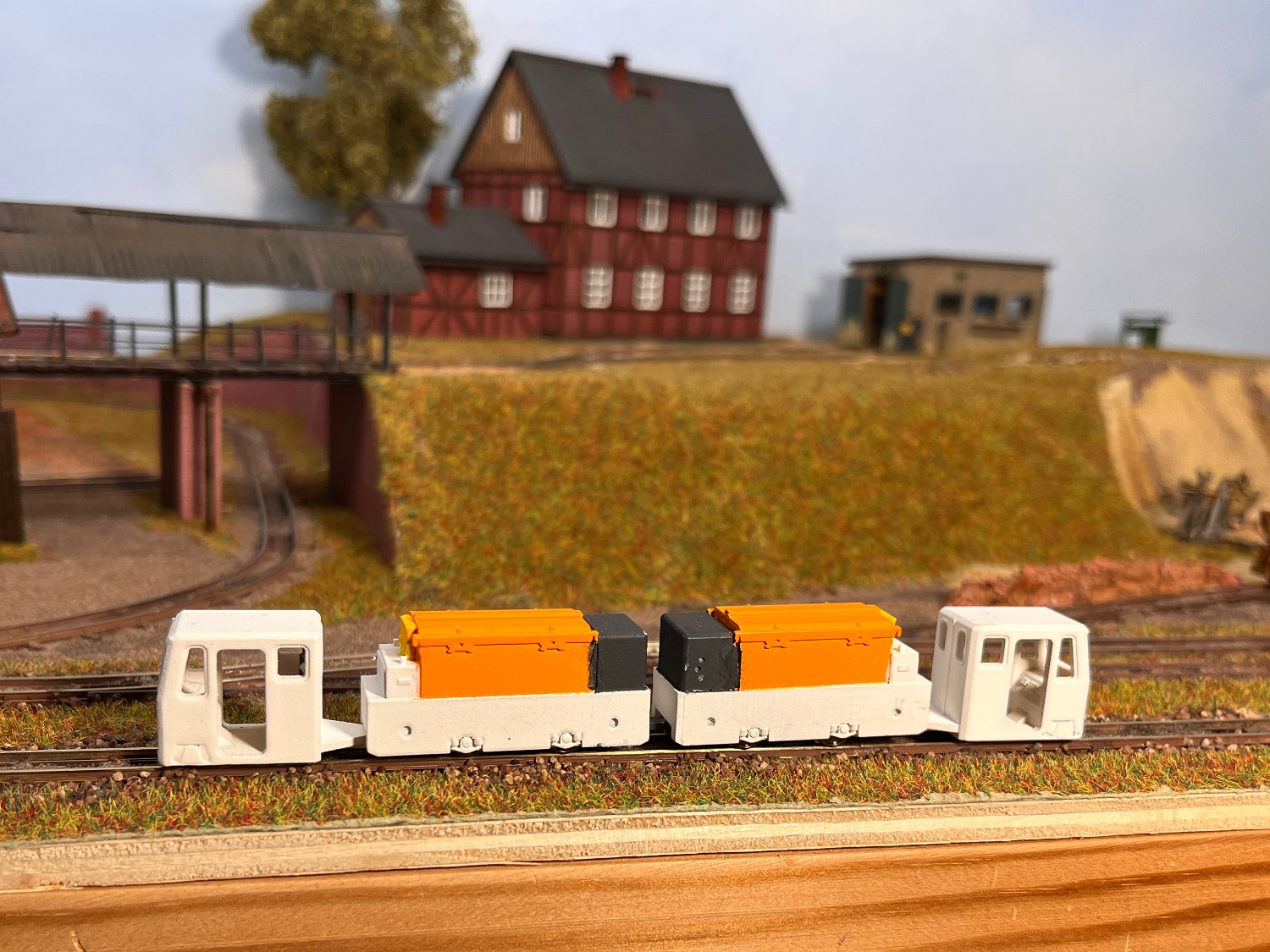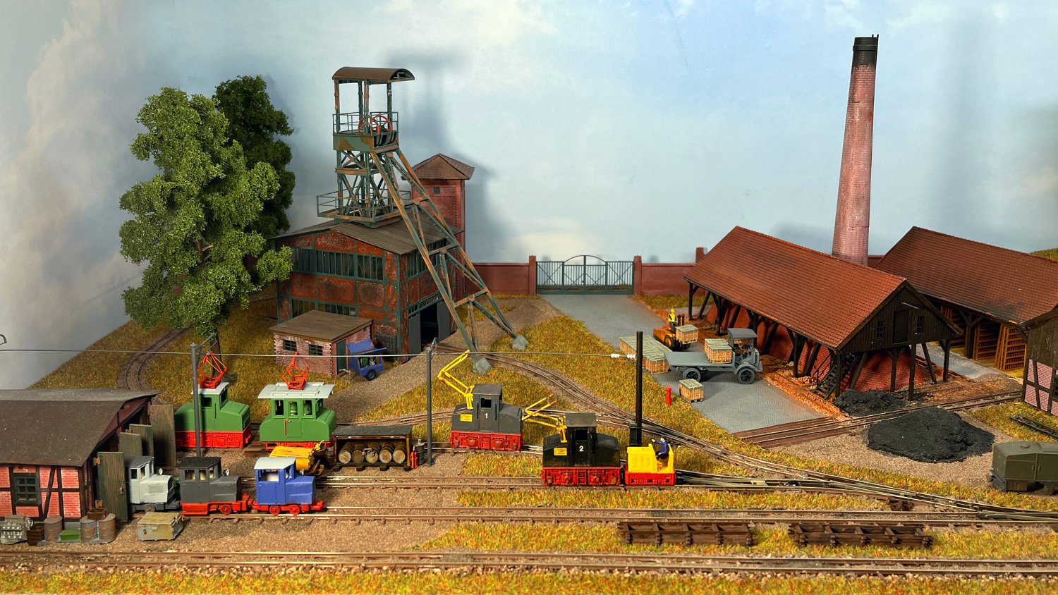 29 Zwei Jung ZL 233 an der Dieseltankstelle. Dahinter endet die elektrifizierte Strecke die irgendwann von einem Waldbahn-Modul kommen soll. Dafür stehen zwei SSW-Fahrleitungsloks zur Verfügung. |