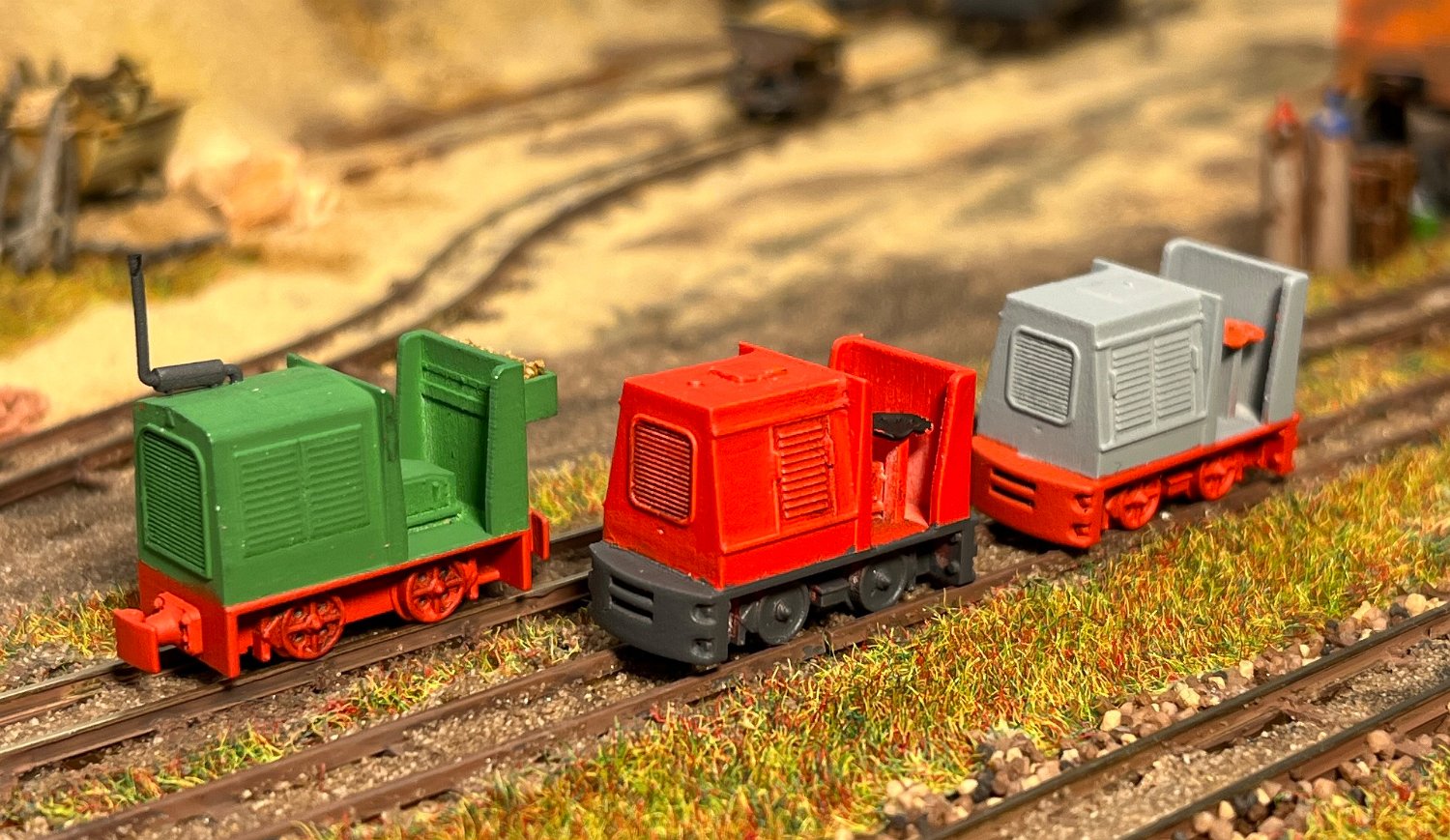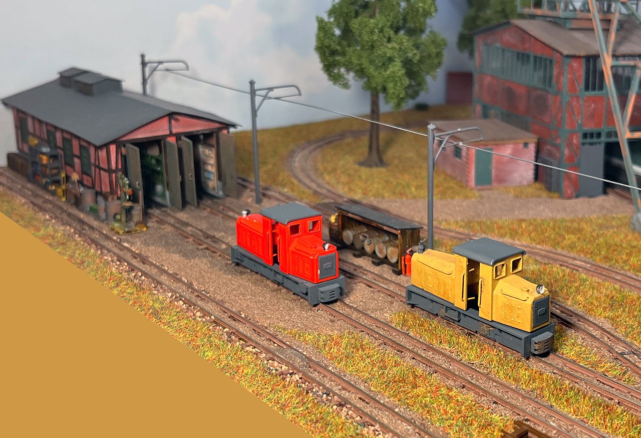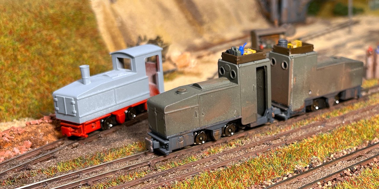 NEU 162 2x BND30 vom Dachziegelwerk Sömmerda, dahinter Varianten der ursprünglichen Grubenlok. |
