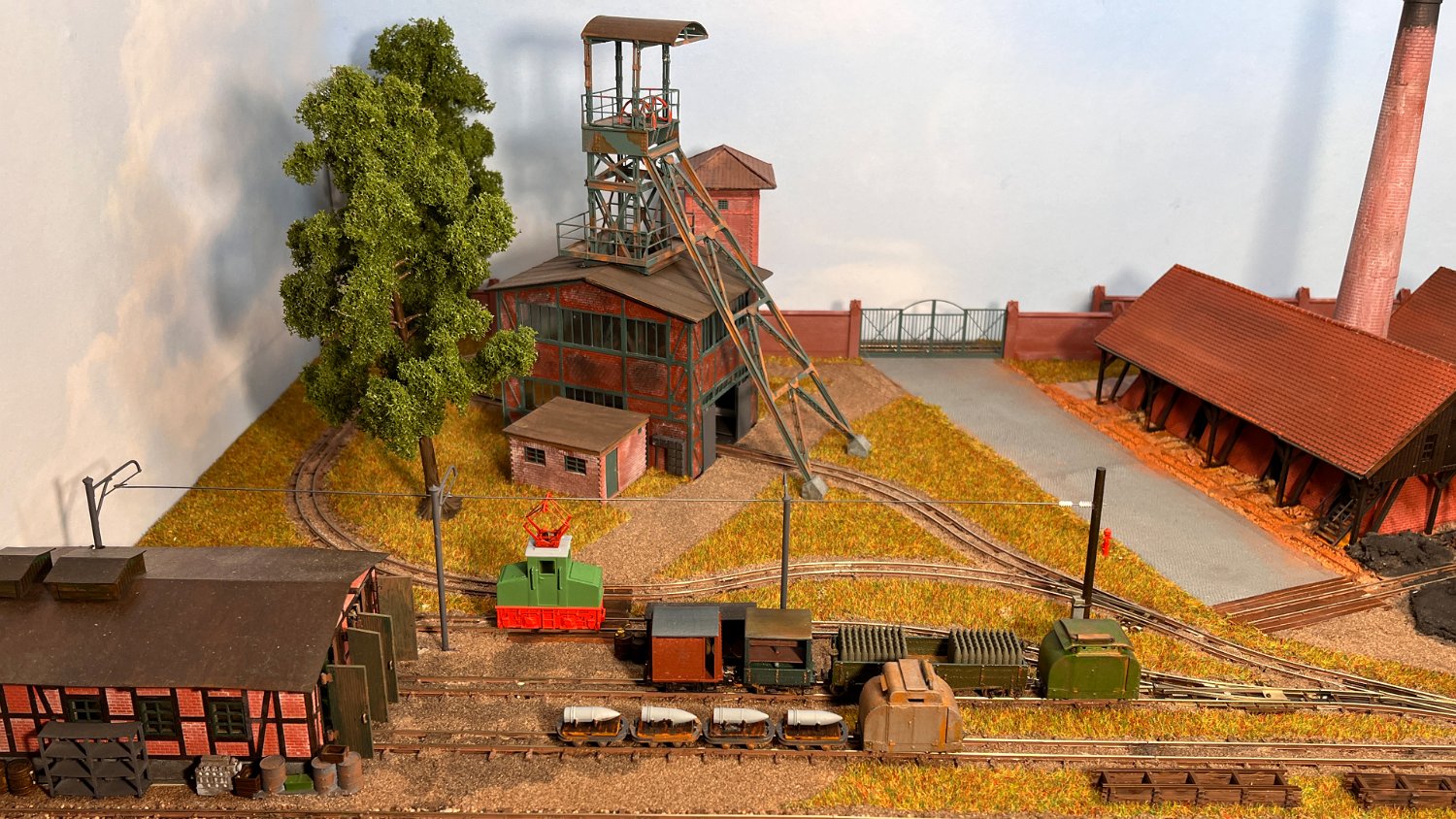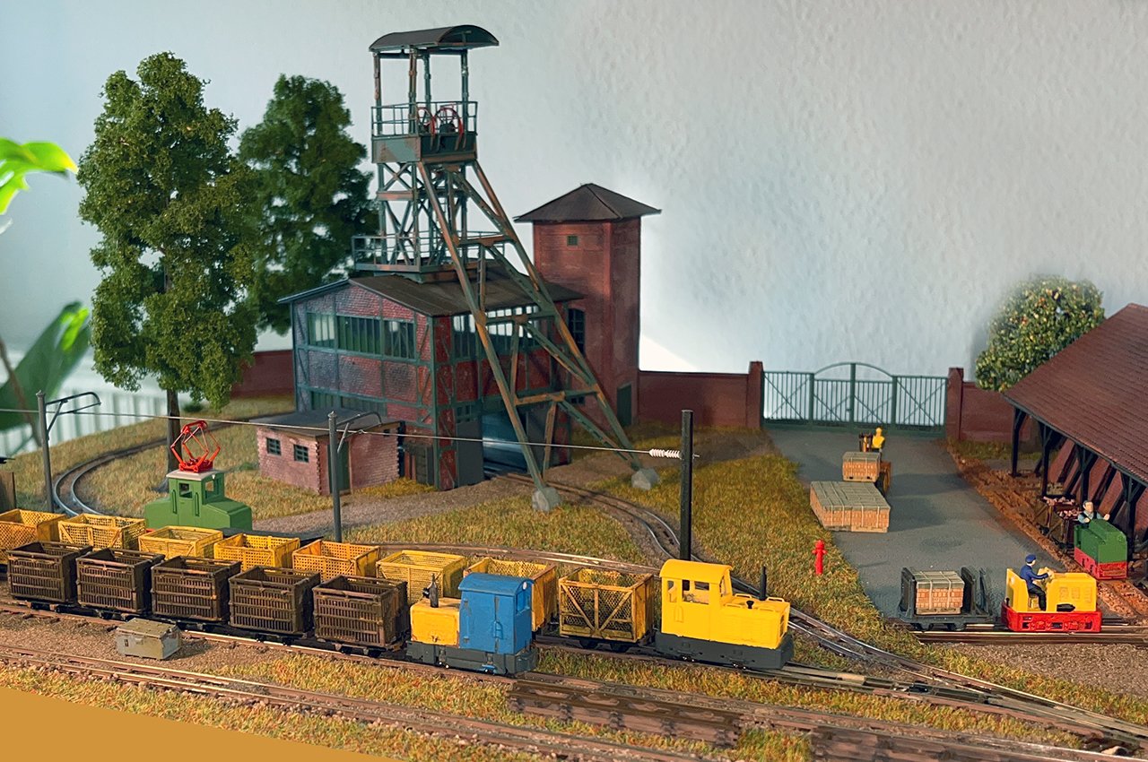59 Ein Überblick über den rechten Anlagenteil: Auf dem Auhagen-Abstellgleis sind auch Fahrleitungs-Grubenloks ausgestellt. |