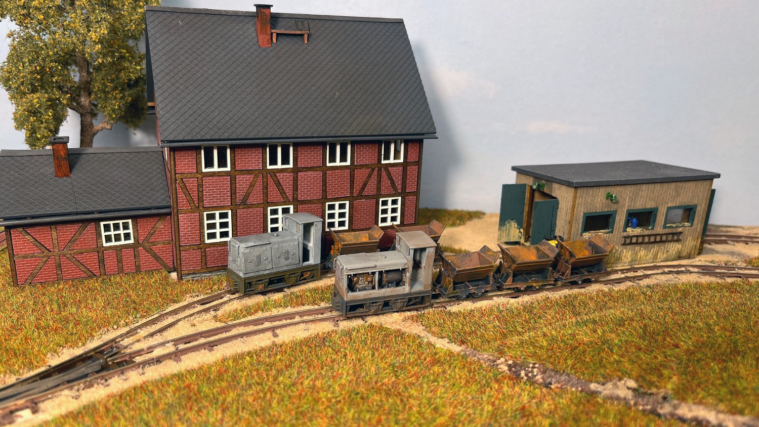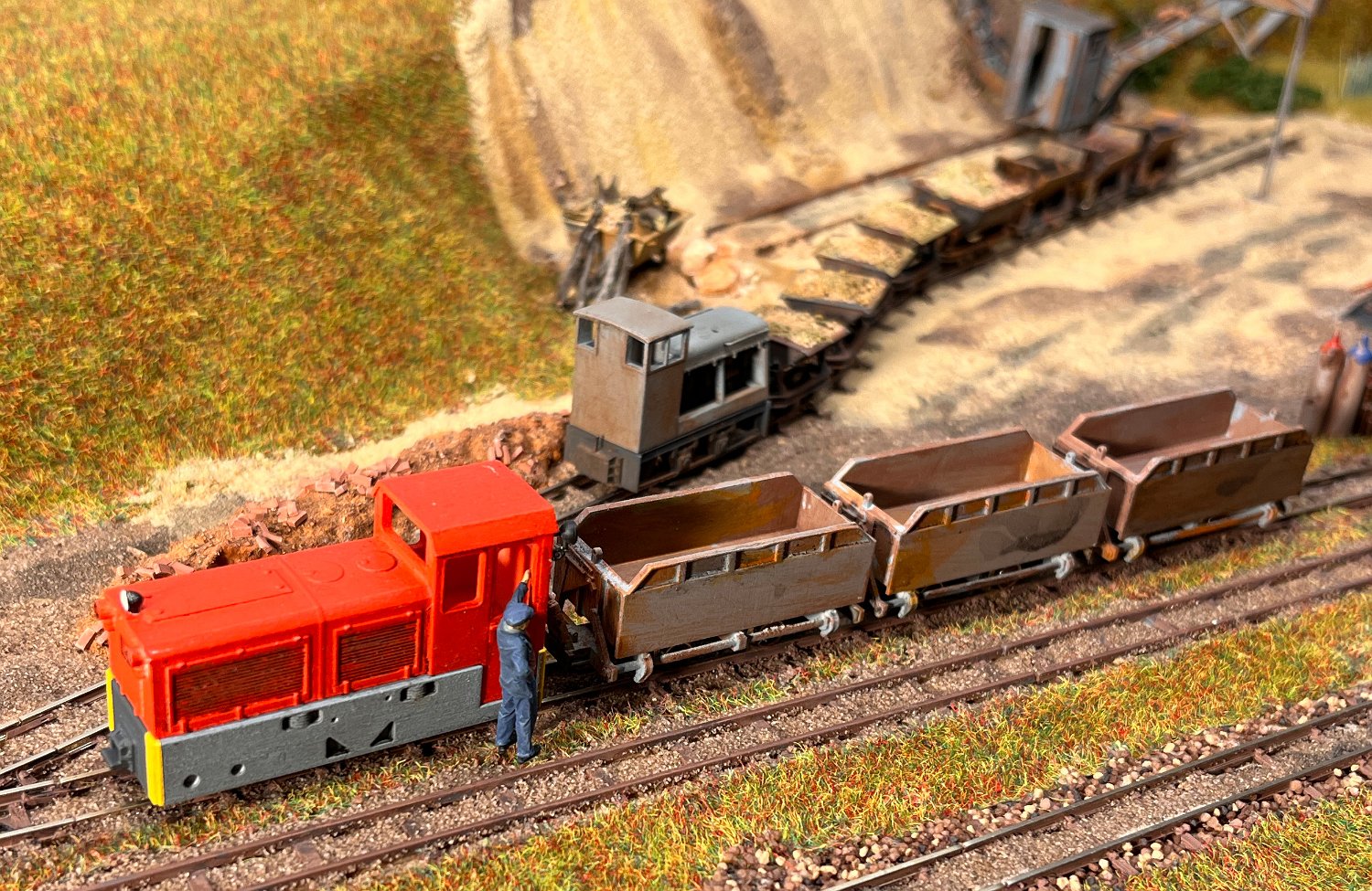 82 Die Torfwagen erhalten noch ihr Ladegut und werden farblich weiter behandelt. |