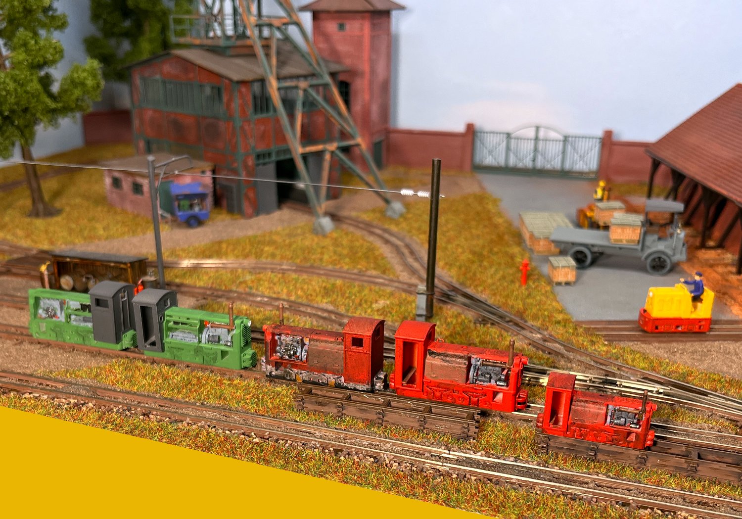 75 In der Mitte eine schwedische Atlas-Druckluftlok von 1917. In gelb die polnischen Grubenloks ELA-44 (Akku), Lds-100 (Diesel) und Ldp-45 (Druckluft). |